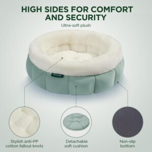 - Anti-Slip Bottom: The round cat bed features a nonskid bottom, providing stability and preventing it from sliding. Whether it’s on the tile floors or hardwood, this feature ensures your pet’s safety and comfort.