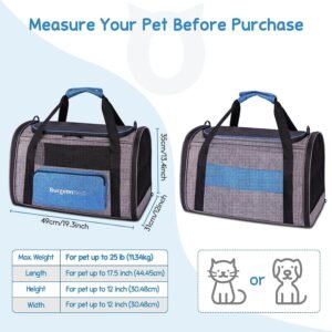 - Soft Cat Carrier: BurgeonNest Pet carrier measures 17.7″L x 12″W x 12.5″H, weights 2.5 lbs perfect for pets under 20 lbs; ideal for travel/ vacation/ leisure/ hiking/ car/ outdoor activities etc.