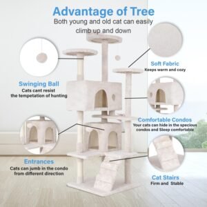 - 🐱 【Multifunctional Activity Center】The cat Tree provides 3 top perches platforms and two cozy condo. Whether your kitten wants to stretch out on a spacious perch, curl up in a plush hole room, or release the urge to scratch on a sisal pole, this multifunctional cat tree tower works perfectly as a recreation paradise,which can make your fur baby’s day full of fun and excitement!two toys gives them a unique way and Fun to play!